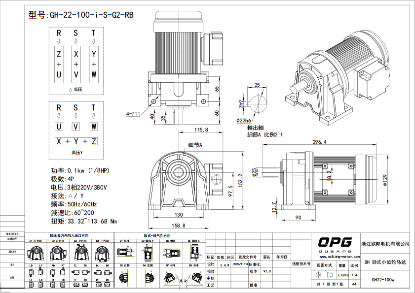 GH- 卧式三相齿轮减速马达